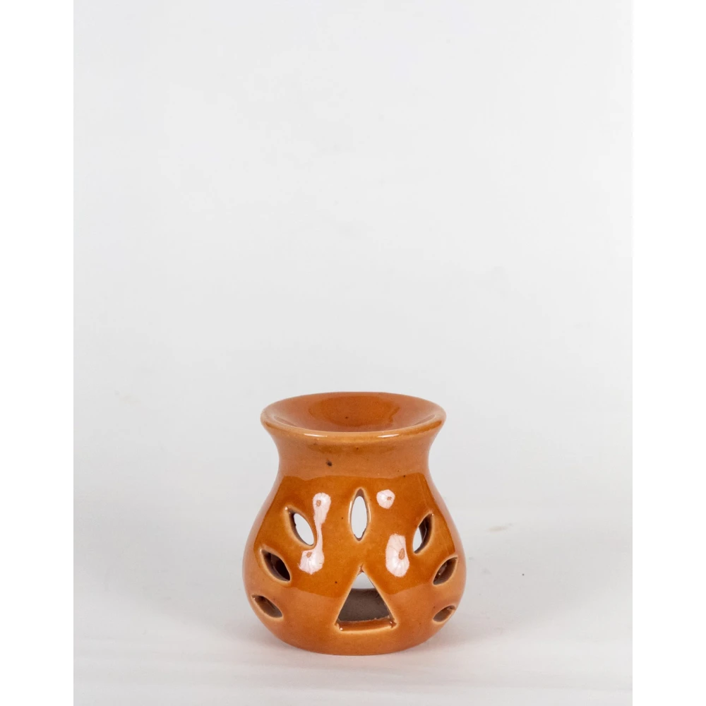 The Amber Glow Ceramic Aroma Burner adds warmth and character to any space with its earthy terracotta tone and handcrafted finish. Made from high-quality ceramic, it features a smooth amber glaze with elegant teardrop-shaped cutwork that allows light to glow gently, creating a relaxing and inviting atmosphere.