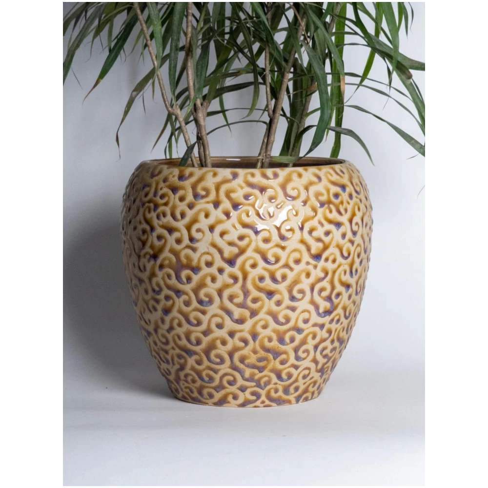 Add warmth and artistic detail to your plant display with the Amber Scroll Textured Ceramic Planter. Designed with an elegant all-over scroll pattern, this planter showcases a beautiful blend of craftsmanship and decorative texture.