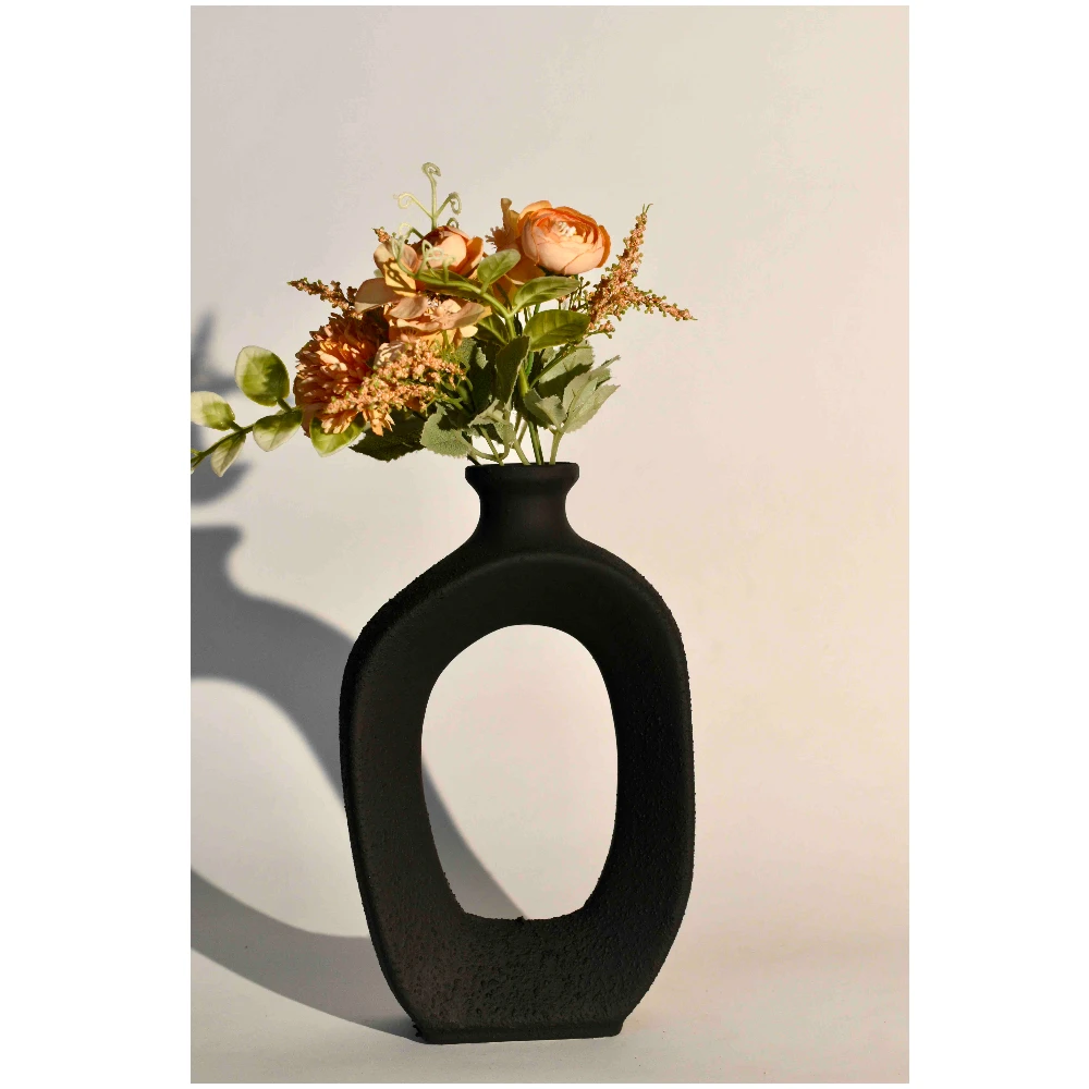 The Arc Noir Sculptural Ceramic Vase is a striking fusion of art and function. Handcrafted with a bold open-arch form, this vase creates a sense of balance, negative space, and architectural rhythm. Finished in a deep matte black with a subtly textured surface, it brings depth and refinement to modern interiors.