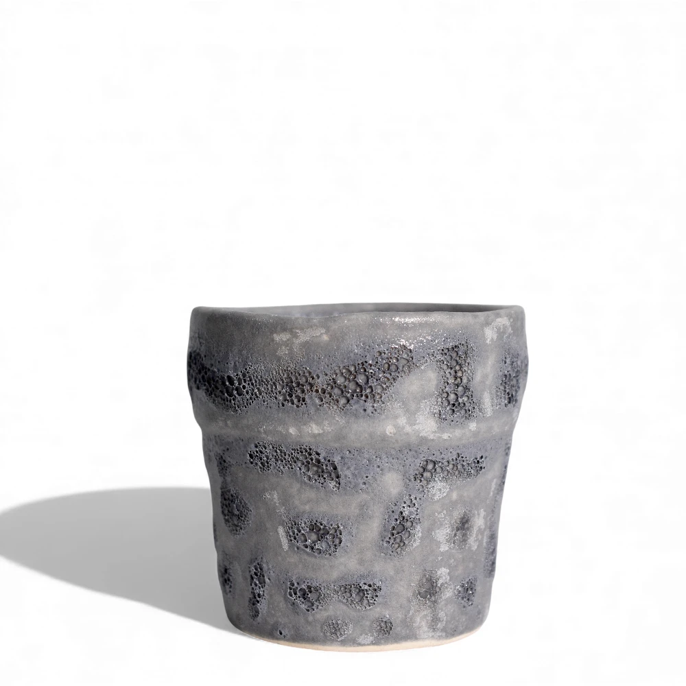 The AshStone Reactive Texture Planter blends contemporary design with raw, organic artistry. Its distinctive bubbled surface is created using a special reactive glaze technique that forms crater-like textures—making each planter one of a kind. The cool ash-grey tone adds a minimalist, industrial vibe, allowing it to complement both indoor and outdoor décor effortlessly.