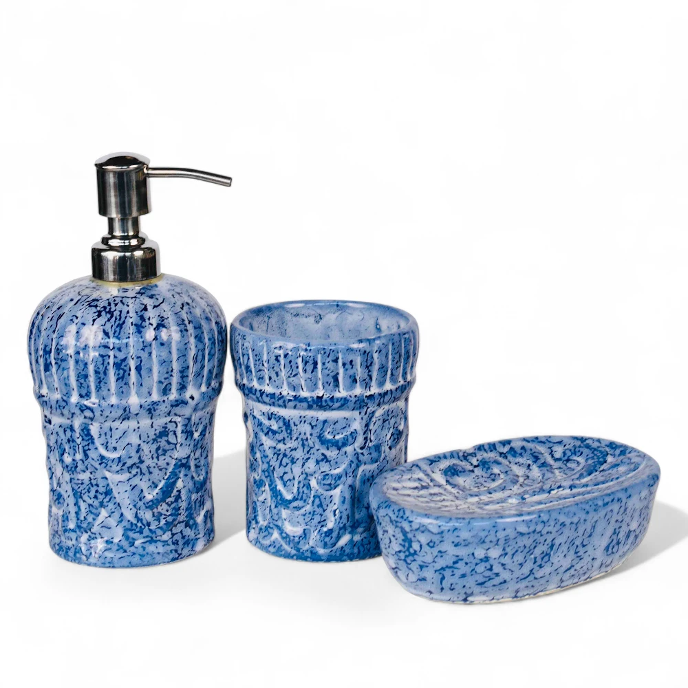 Bring the serenity of the sea and the beauty of handcrafted art into your home with the Azure Splash Ceramic Bathroom Set by DNF Ceramics.