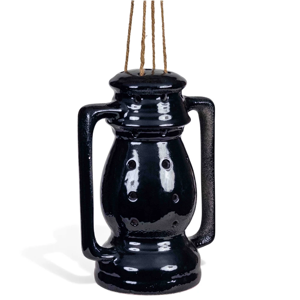Create a warm, inviting glow with the Black Hanging Ceramic Lantern from DNF Ceramics. Handcrafted in a vintage-inspired silhouette, this lantern features elegantly shaped side handles and precision-cut holes that cast beautiful, patterned light when illuminated.