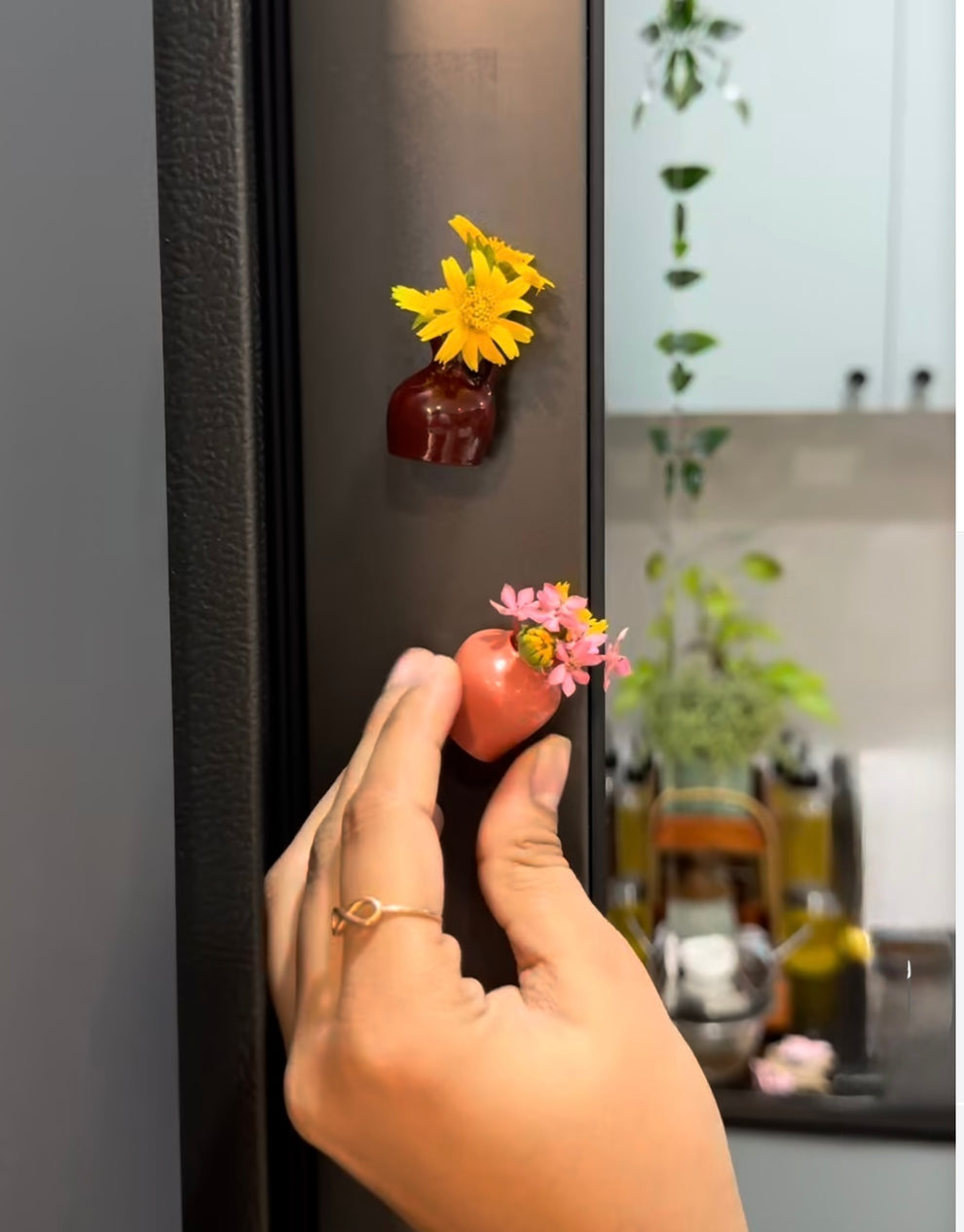 The BloomDots Magnetic Mini Vase transforms ordinary metal surfaces into charming floral displays. Crafted in glossy ceramic with soft, rounded forms, each miniature vase features a strong magnetic backing for effortless placement on refrigerators, cabinets, lockers, or metal boards.