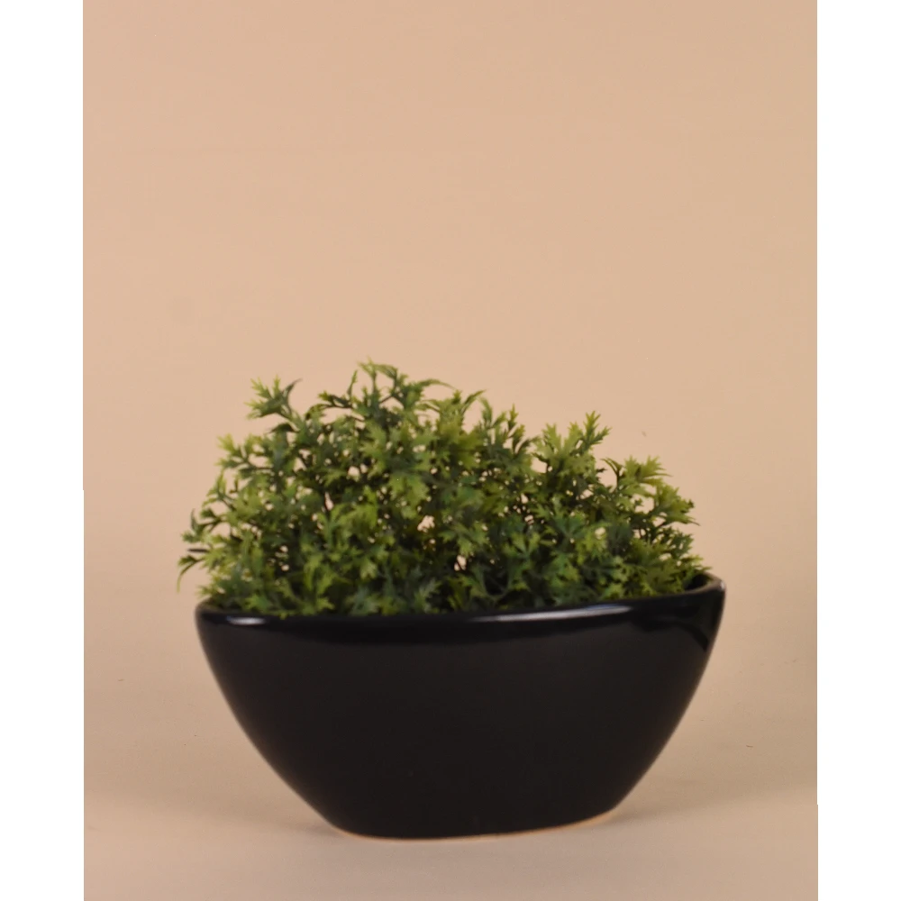 Elegant black oval ceramic planter with a glossy finish — ideal for succulents, artificial greens, and tabletop décor.