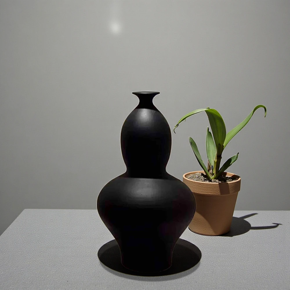Add an artistic touch to your space with this gourd-shaped ceramic vase, finished in elegant matte black. Its flowing double-curve silhouette creates a bold yet calming visual presence—perfect for modern homes, studios, workspaces, gallery corners or coffee table styling.