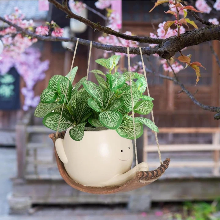 Add charm and playfulness to your décor with this Cute Resin Swing Planter, designed as a sweet little character happily seated on a hanging swing. The matte cream body paired with a wooden swing detail creates a beautiful blend of warmth and joy — perfect for balconies, windows, indoor gardens, workspaces and children’s rooms.