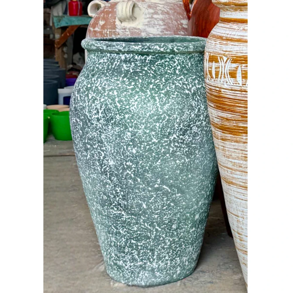 A handcrafted tall ceramic planter with a speckled green rustic finish. Perfect for indoor and outdoor décor, villas, gardens, cafés, resorts, and premium landscaping.