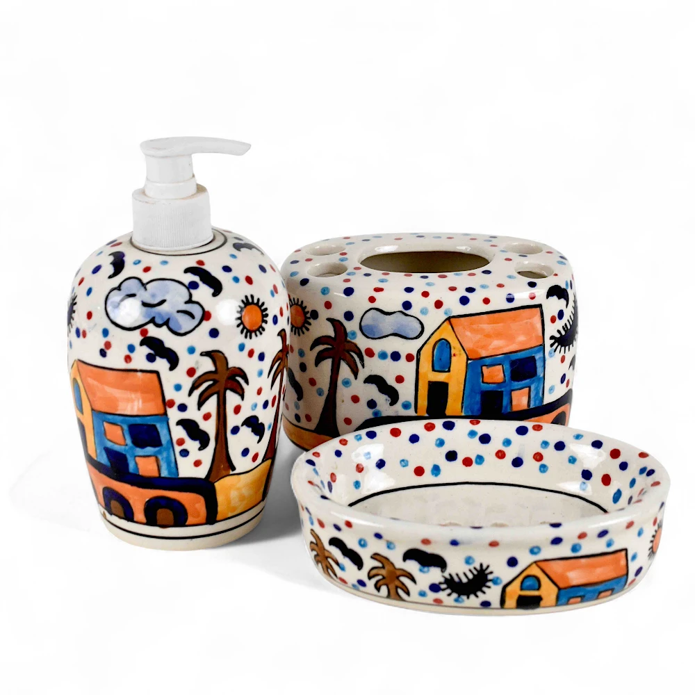 Add joy and artistry to your daily routine with the Hand-Painted Color Splash Ceramic Bathroom Set by DNF Ceramics.