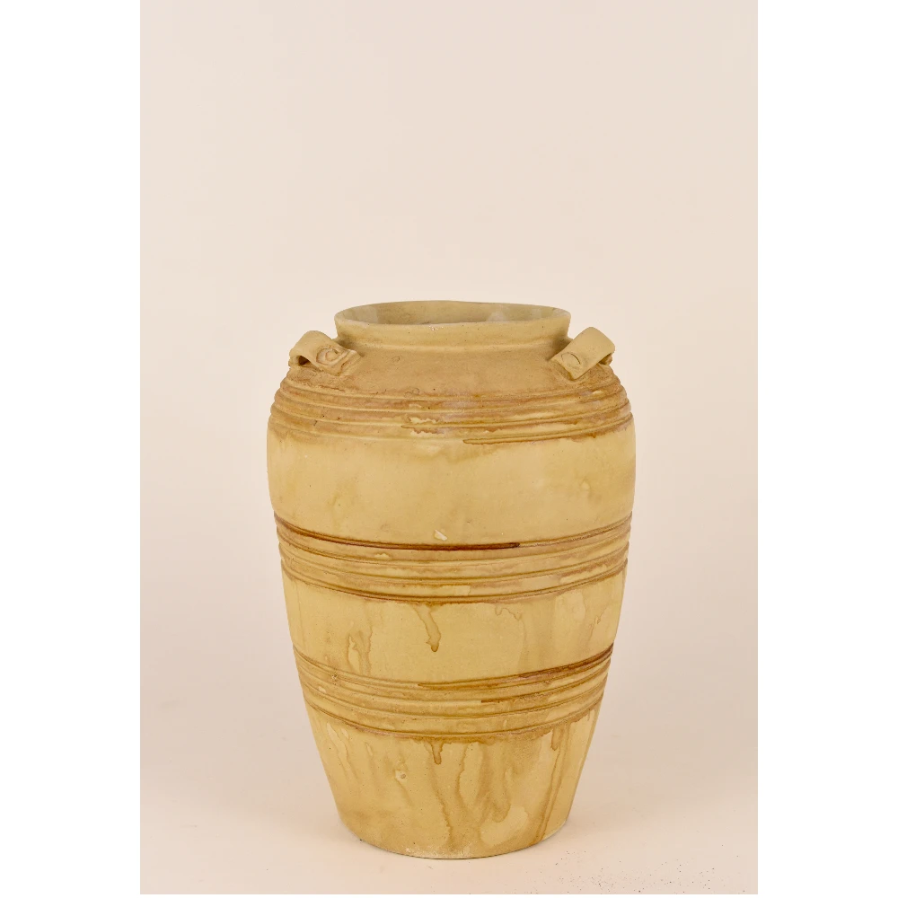 Bring timeless character to your space with this handcrafted ceramic vase designed in a rustic, earthen tone. Subtle drip lines and carved ring detailing add artistic warmth, giving the piece a traditional yet contemporary elegance. Its natural finish blends effortlessly with minimal, boho, vintage, farmhouse and earthy décor settings.