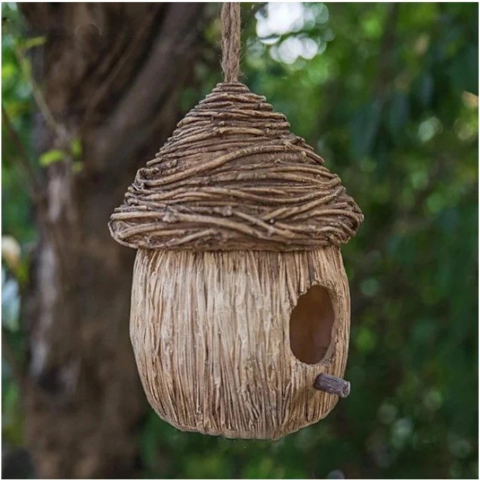 Made from eco-friendly ceramic with realistic bark and twig-like detailing, it provides a cozy shelter for small birds while doubling as a charming garden accent.