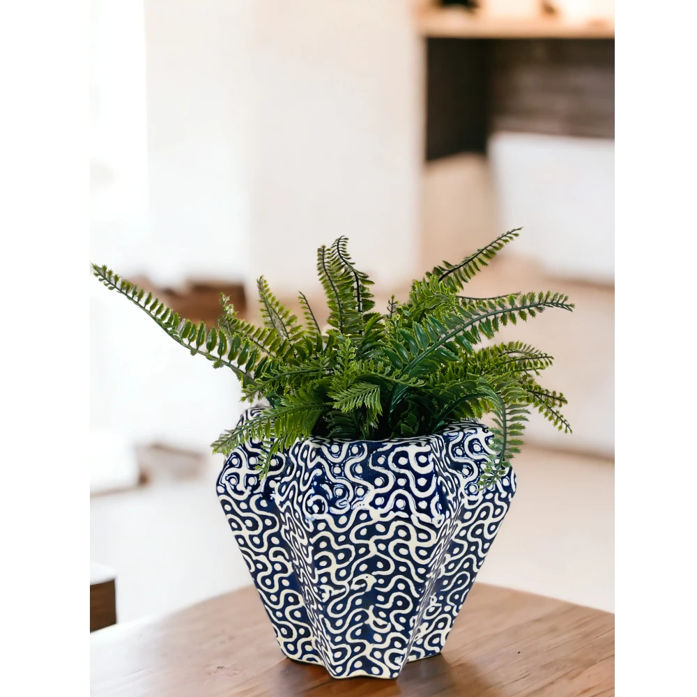 Make your décor stand out with the Indigo Facet Designer Planter — a perfect fusion of artistic detailing and contemporary geometry. Designed with a unique multi-faceted silhouette, this planter adds dimension and sculptural appeal to any space.