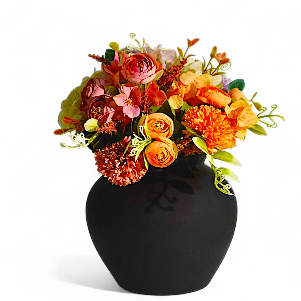 Crafted in a smooth black matte finish, this vase serves as a striking backdrop for vibrant florals — from dried arrangements to fresh seasonal stems. Its rounded silhouette adds depth and grounding to any modern or rustic interior.