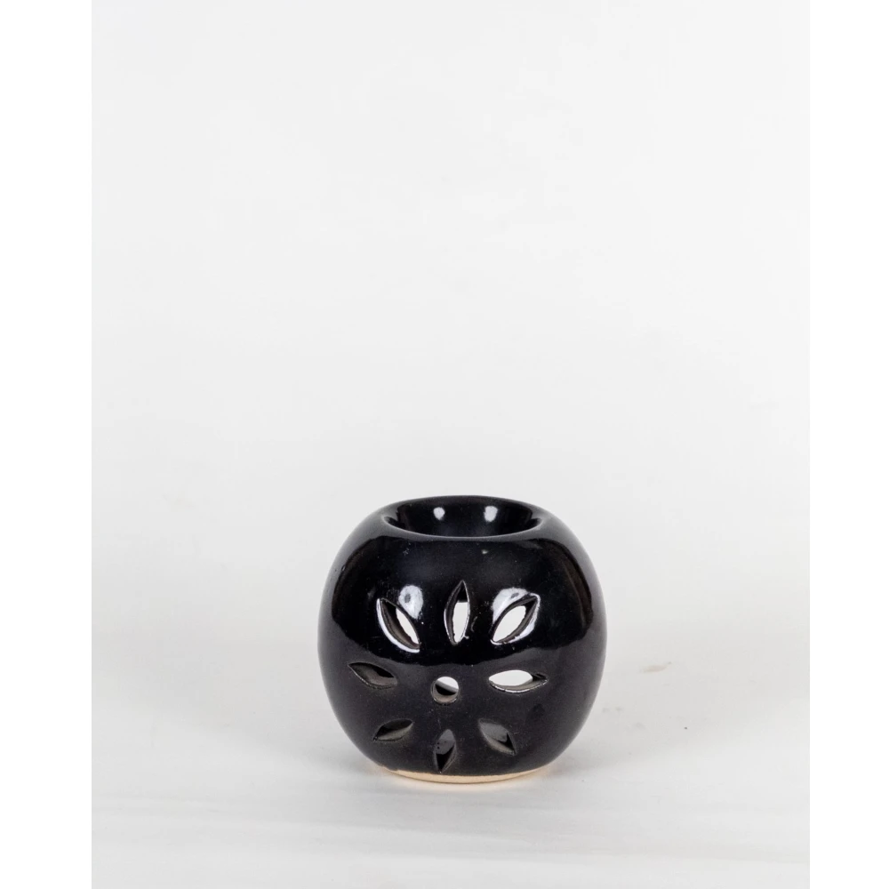 The Midnight Petal Ceramic Aroma Burner is a compact yet striking décor piece designed to add warmth and fragrance to your space. Crafted from high-quality ceramic and finished in a rich glossy black glaze, this burner features delicate petal-shaped cutwork that allows light to gently shine through, creating a calm and elegant atmosphere.