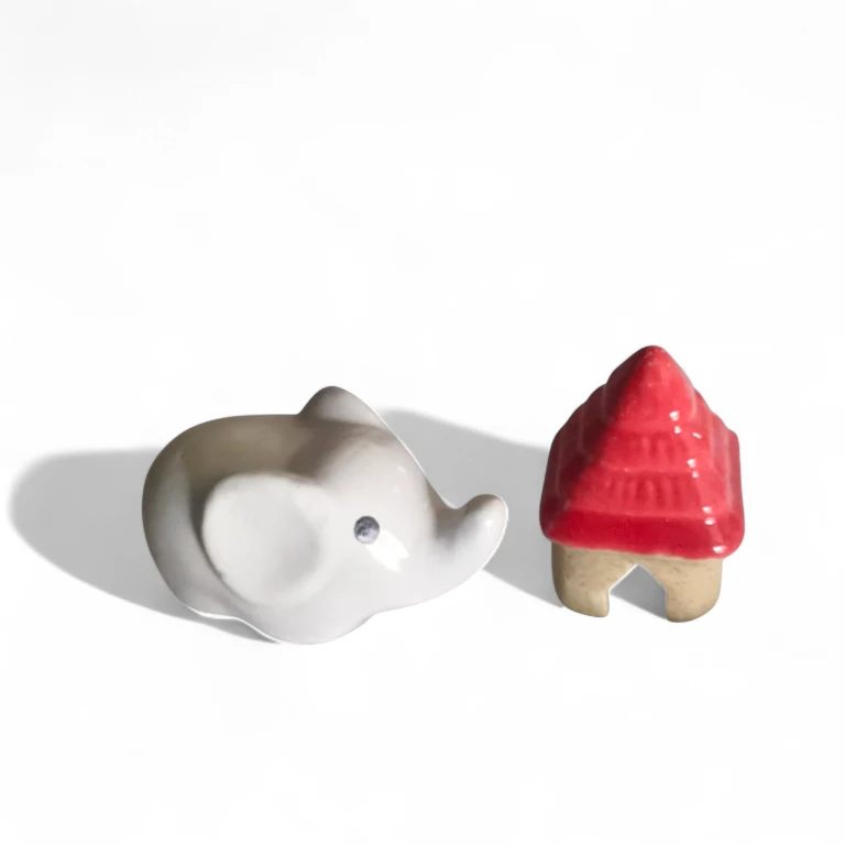 A charming handcrafted ceramic set featuring a cute elephant and a red-roofed hut — perfect for home décor, gifting, and mini collectible displays.