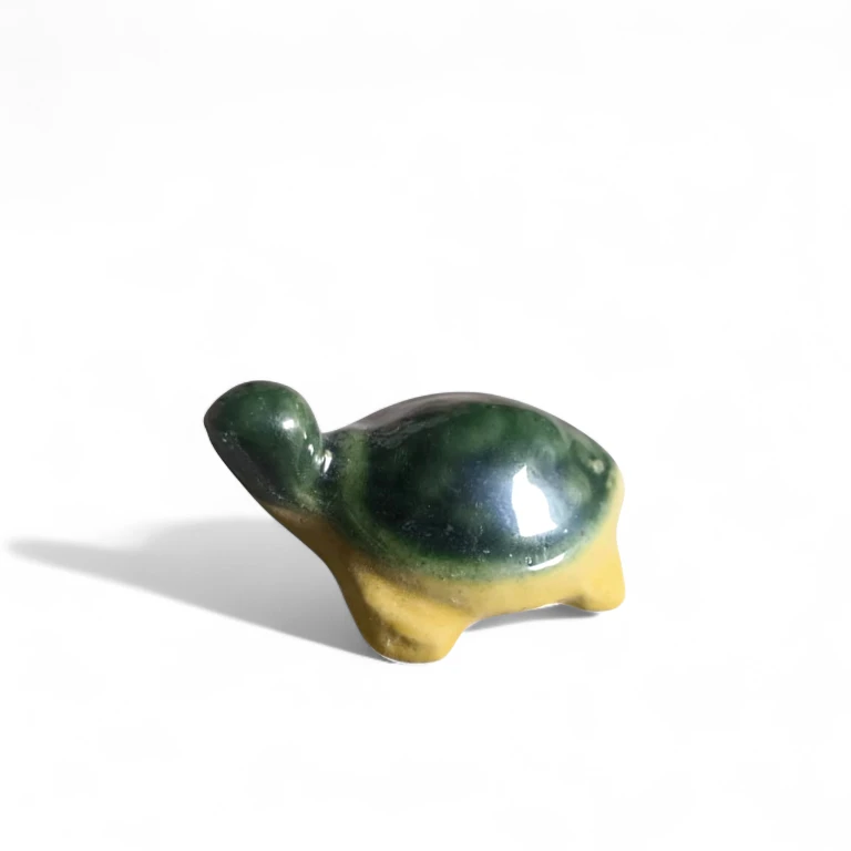 Each turtle is individually hand-shaped and finished with a smooth glossy glaze in green and golden tones, giving it a lifelike yet artistic look. The turtle — a timeless symbol of stability, wisdom, and good fortune — makes this piece a meaningful addition to your home décor or collection.