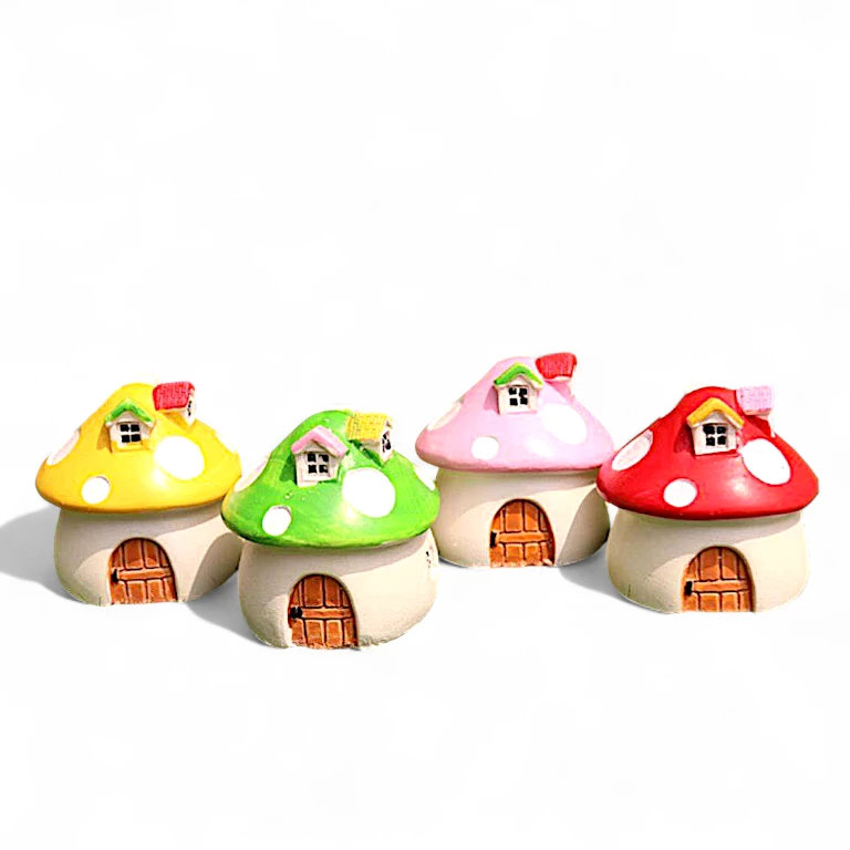 Each piece is meticulously handcrafted and hand-painted in bright, cheerful colors — red, pink, yellow, and green — to bring a fairy-tale charm to your garden, desk, or shelf.