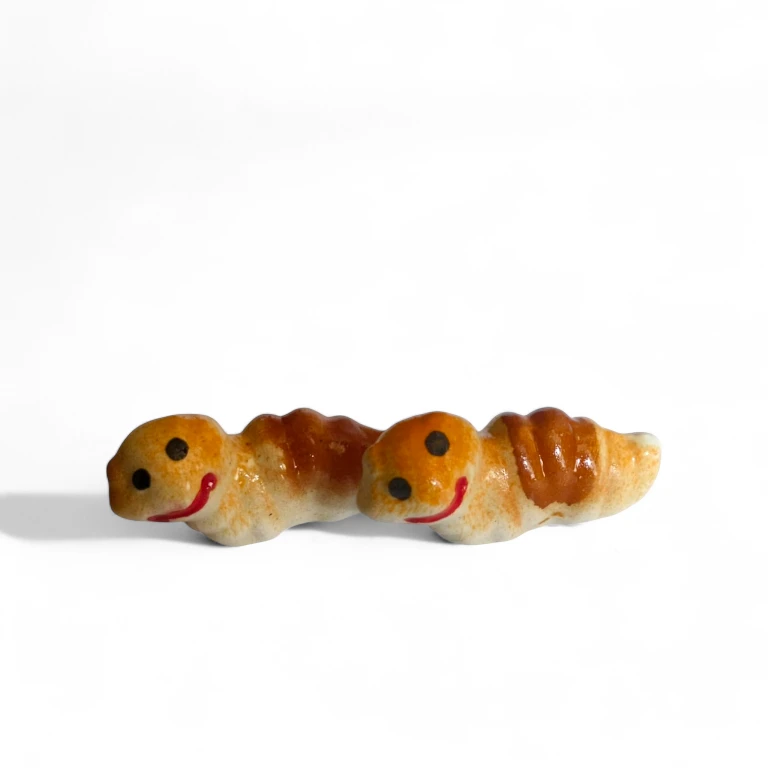 Lovingly handcrafted and finished with a glossy brown-and-cream glaze, these tiny smiling worms bring playful charm and a touch of nature to any setting.