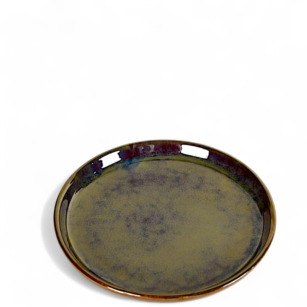 Its minimalist round form and slightly raised edges make it ideal for serving main courses, pasta, or desserts with refined style. The durable ceramic construction ensures everyday usability, while the handmade glaze detailing adds a unique, artisanal touch to each piece.
