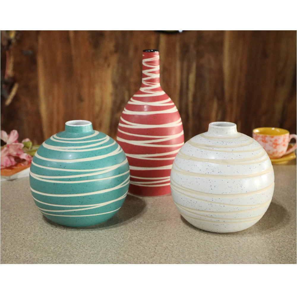 The Orbit Form Decorative Vase Collection is an exploration of balance, rhythm, and handcrafted precision. Each vase is shaped into a smooth, rounded or elongated form and finished with flowing spiral lines that gently wrap around the surface, creating a sense of continuous motion.
