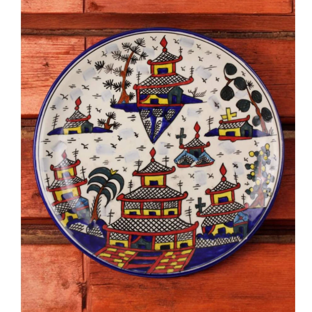 Introduce timeless charm to your home with our Oriental Pagoda Hand-Painted Wall Hanging Plate.