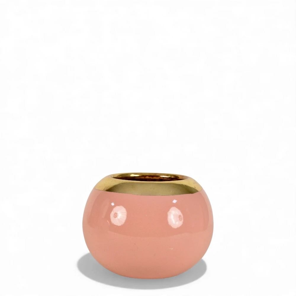 The Peach Gold Luxe Ceramic Pot blends soft elegance with a premium polished look. Its warm peach tone is paired with a metallic gold rim, creating the perfect balance of subtle charm and luxury. Compact and stylish, this piece suits coffee tables, office desks, living room shelves, and corners that need a gentle yet classy touch.