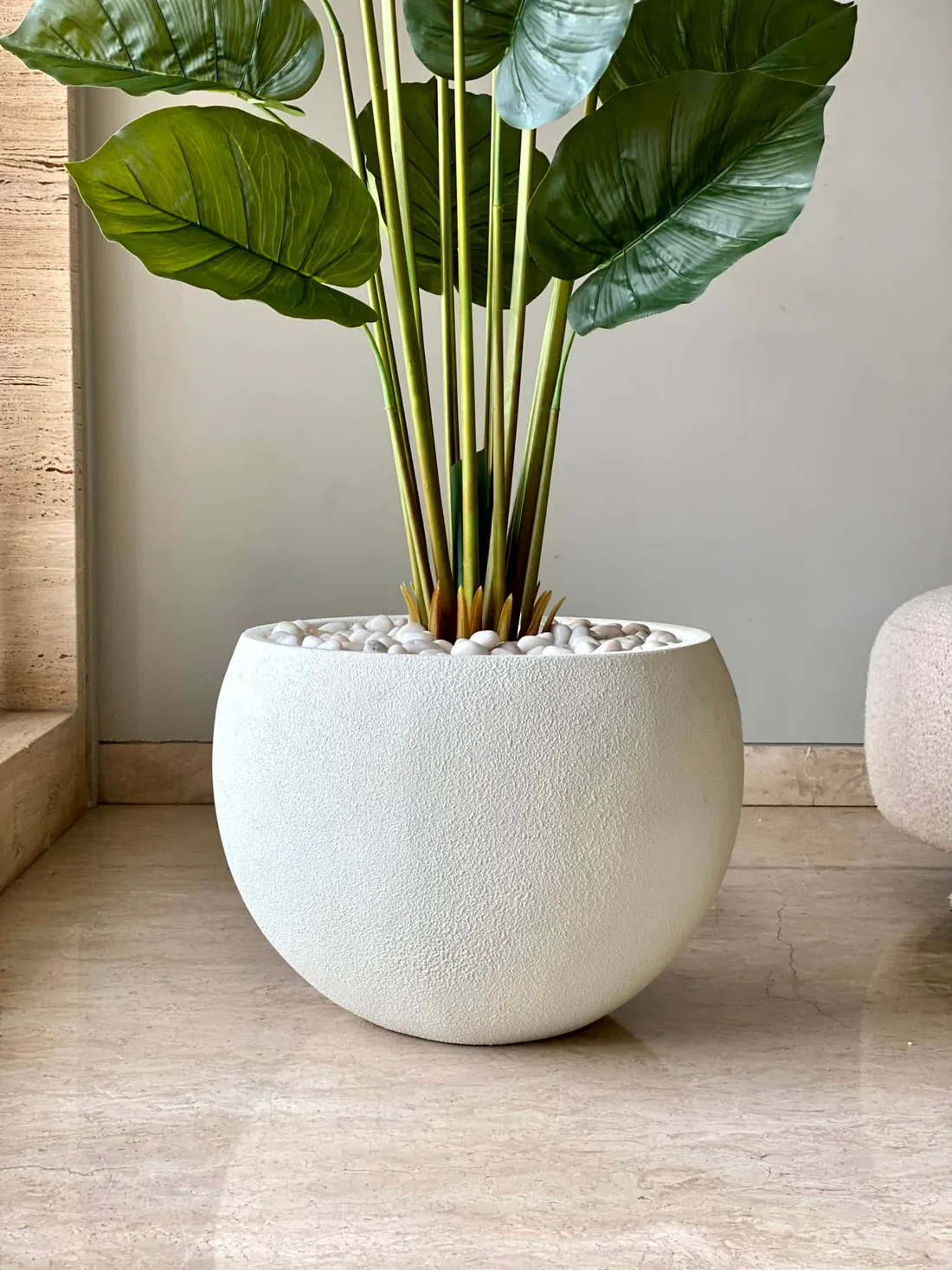 Introducing the Pebble White Globe Planter, a beautifully rounded planter crafted with a soft matte pebble texture that brings effortless elegance to any space. Its globe silhouette gives plants a fuller, more luxurious presence — perfect for indoor greens, ornamental shrubs, palms, and decorative plants.