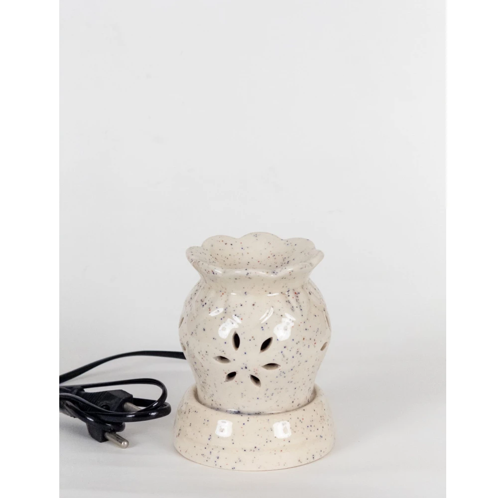 The PetalMist Ceramic Aroma Diffuser Lamp is inspired by natural floral forms, featuring a gently flared petal-rim opening and delicate cutout patterns that emit a warm, calming glow. Its speckled ivory glaze adds a handcrafted charm while keeping the design minimal and contemporary.
