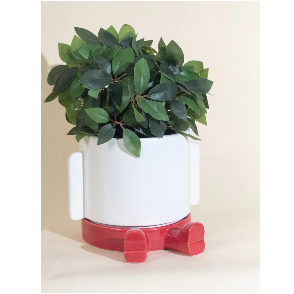 The PlayStep Ceramic Planter is designed to bring a touch of fun and modern elegance to your interiors. Crafted in smooth, glossy ceramic, the planter features a clean white cylindrical body supported by a unique red footed base that adds personality and visual interest.