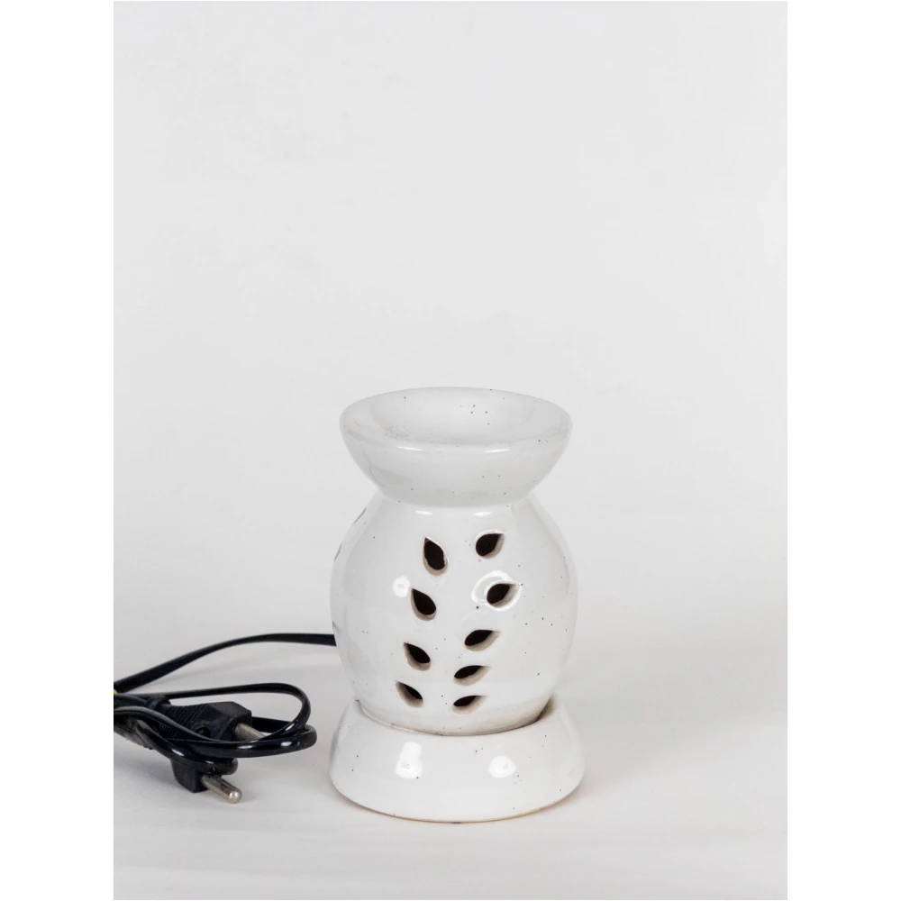 The PureGlow Ceramic Aroma Diffuser Lamp embodies simplicity and calm through its timeless form and crisp white finish. The rounded silhouette is accented with delicate teardrop cutouts that allow warm light to filter through, creating a soothing and serene atmosphere.