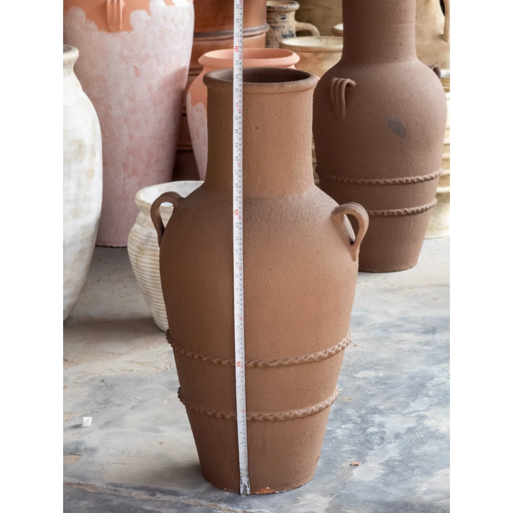The Raw Terracotta Amphora Floor Vase – Natural Clay Finish is a timeless decorative piece that celebrates authentic craftsmanship and traditional pottery forms. Handcrafted from natural terracotta clay, this vase features a tall cylindrical neck, a rounded body, and subtle twin side handles, echoing the design of classic Mediterranean amphorae.