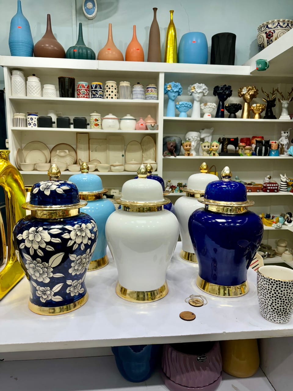 Designed to elevate modern, classic, and contemporary spaces alike, these jars work beautifully as standalone décor pieces or as part of a curated display. The balanced silhouette and rich color palette make them ideal for living rooms, bedrooms, hotel lobbies, and upscale retail or hospitality projects.