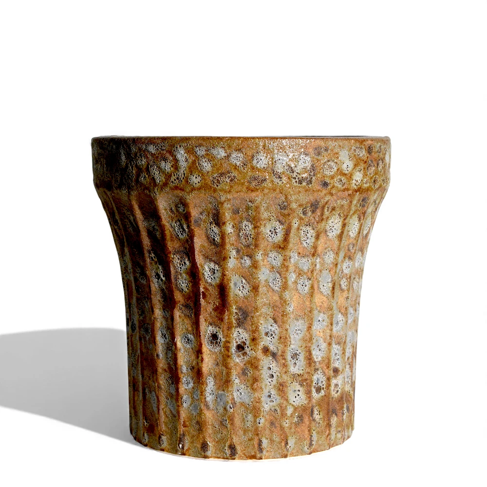 A handcrafted rustic planter with a ribbed, crater-textured finish in warm earthy tones—perfect for adding artisanal depth to any indoor or outdoor setting.