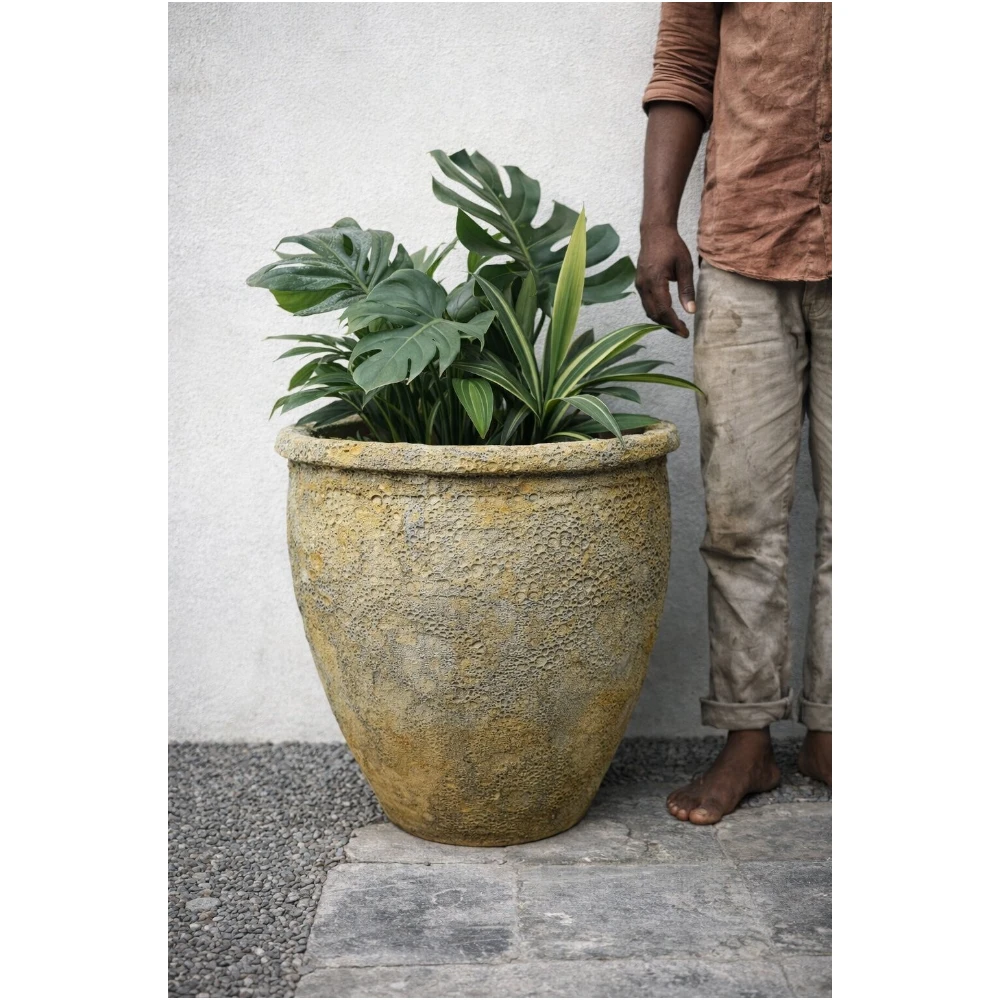 Crafted by skilled artisans, each planter carries subtle variations in texture and finish, ensuring every piece is unique. Whether placed in a living room, patio, entryway, or hospitality setting, this planter acts as a bold decorative element while enhancing the natural beauty of plants.