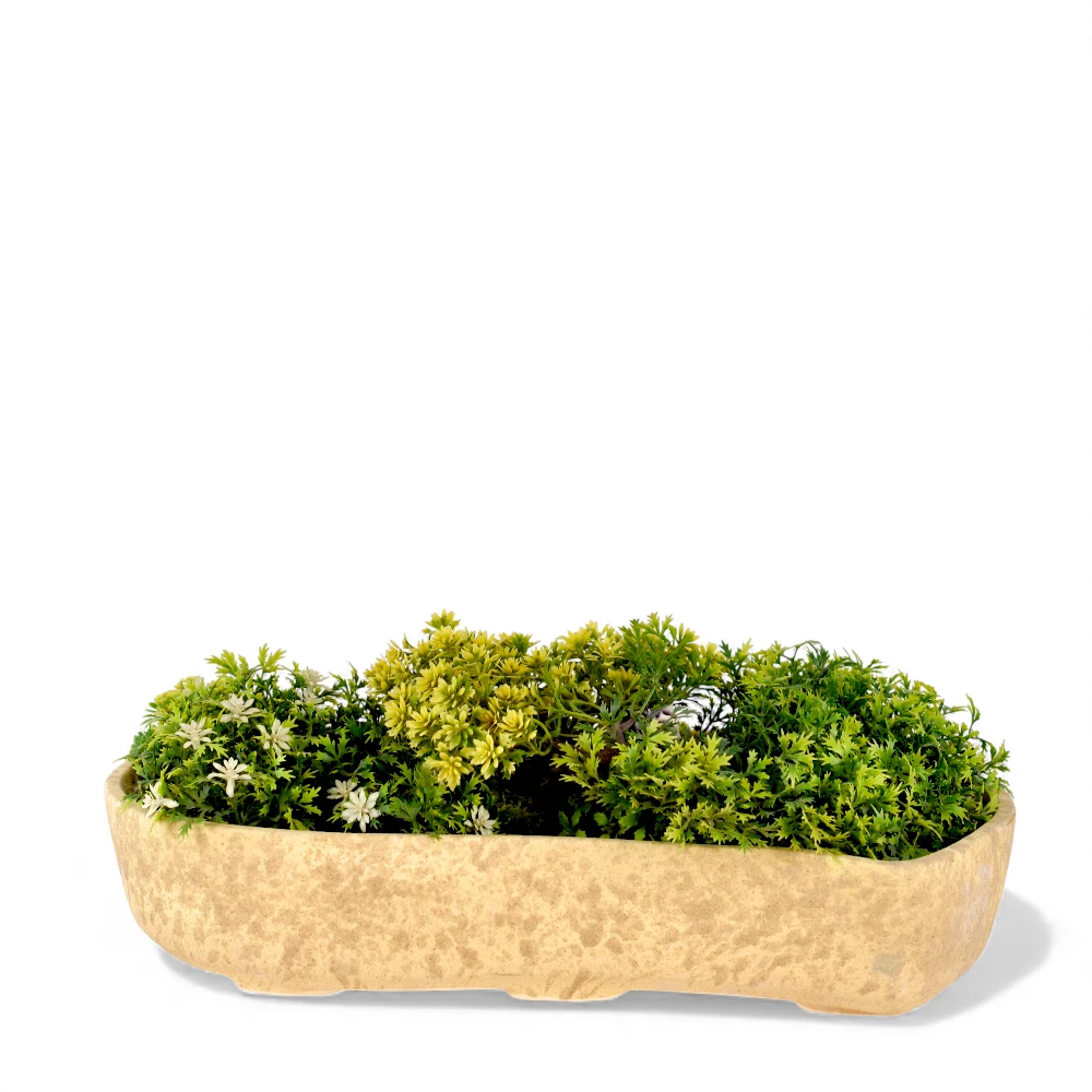 Bring a touch of earthy elegance to your plant arrangements with the Sandstone Oval Bonsai Planter. Designed with a beautifully textured sandstone finish, this handcrafted piece blends naturally into any indoor or outdoor setting. Its smooth, organic oval form offers generous space for bonsai compositions, succulent gardens, or tabletop greenery displays.