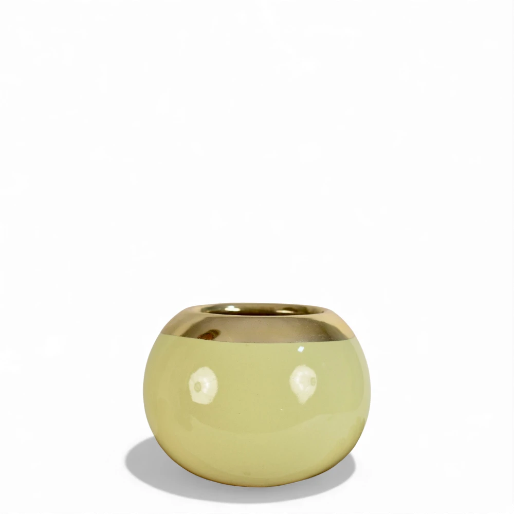 A soft pastel yellow ceramic pot enhanced with a premium gold rim — elegant, subtle, and perfect for bright décor styling.
