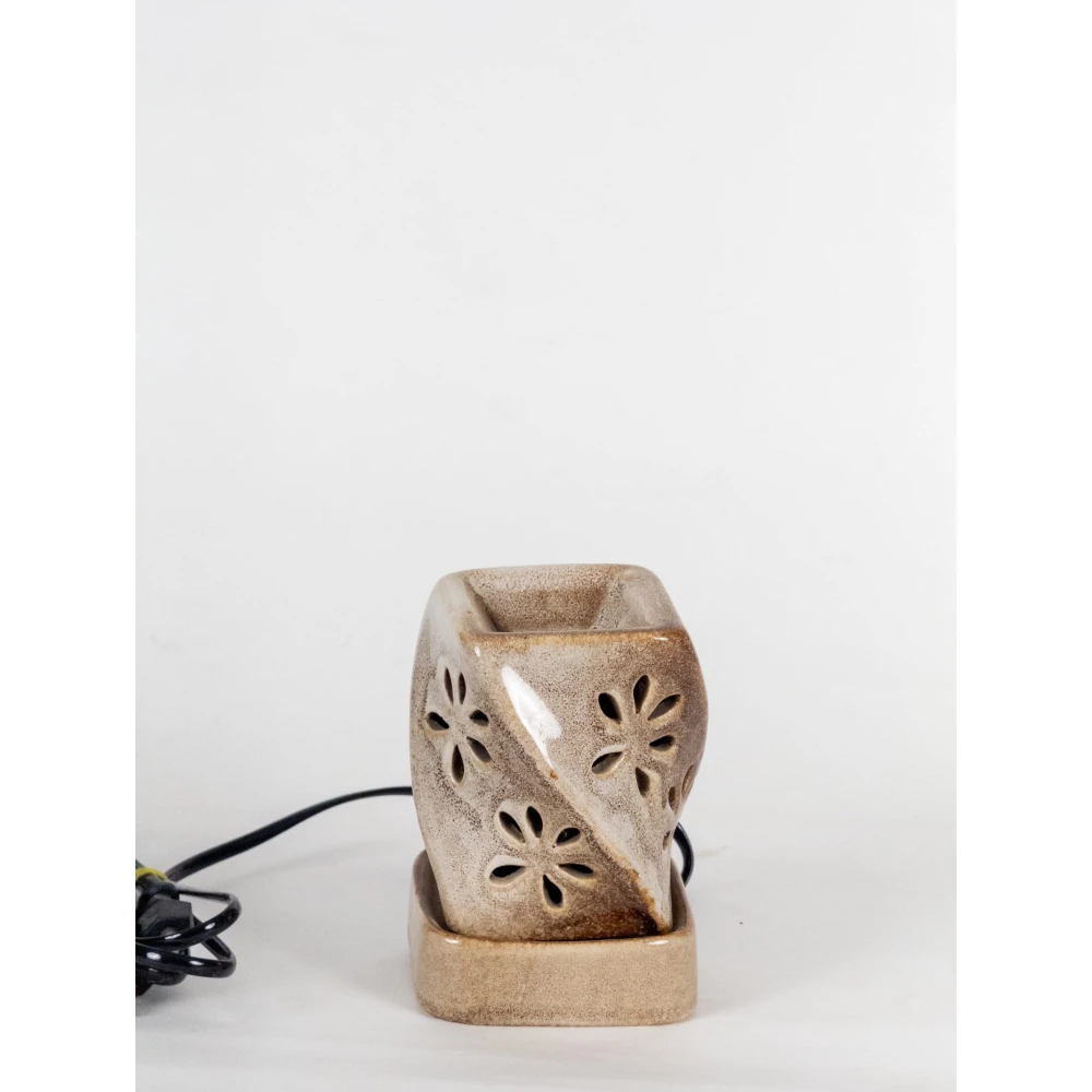 The Stone Bloom Ceramic Aroma Burner is inspired by natural stone textures and gentle floral forms. Handcrafted from high-quality ceramic, this burner features a smooth beige glaze with a sculptural twisted design and delicate floral cutwork that allows light to glow softly, creating a calming and elegant atmosphere.