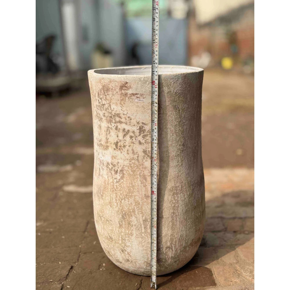 The subtle texture mimics natural stone, giving it an organic yet contemporary character. Perfect for palms, ficus, indoor greens, or statement plants.