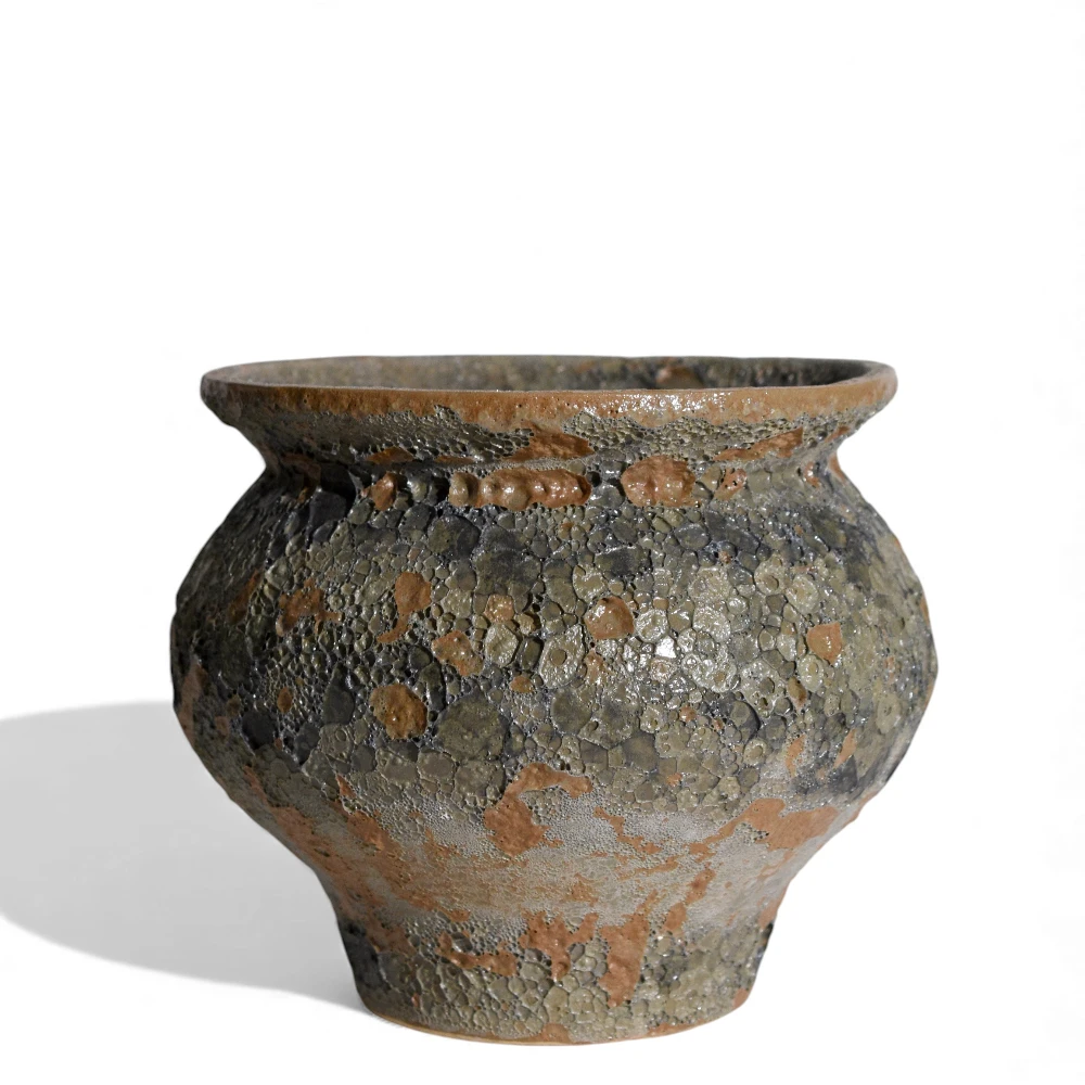 The StoneForge Textured Heritage Pot embodies the raw beauty of traditional ceramic craftsmanship. Its wide, rounded form and subtly flared rim evoke the charm of ancient earthenware, while the unique stone-like textured surface adds depth, character, and an artisanal touch. The organic blend of earthy greys, browns, and natural patina gives this piece a weathered, heritage-inspired appeal.