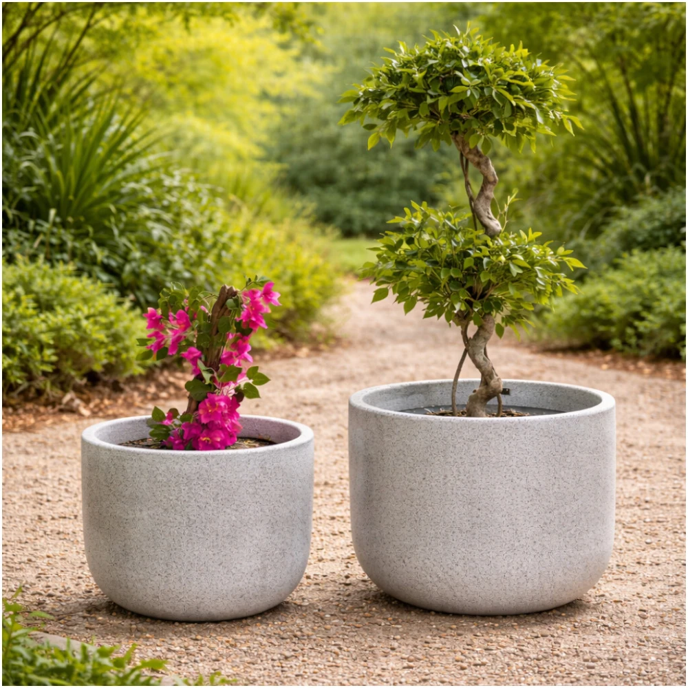 Crafted from high-quality fiberglass, they are UV-resistant, waterproof, crack-resistant, and ideal for both indoor and outdoor use. The soft curved silhouette enhances greenery beautifully — perfect for flowering plants, bonsai, shrubs, or statement trees.