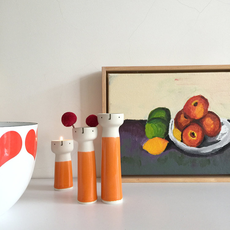 Bring personality and artistic flair into your home with this beautifully crafted Tall Minimal Face Vase Set. Each vase features a sleek elongated form, a glossy orange color block body, and a simple hand-drawn face that gives it a modern, Scandinavian-inspired charm. Whether used individually or grouped together, these vases make a striking décor statement.
